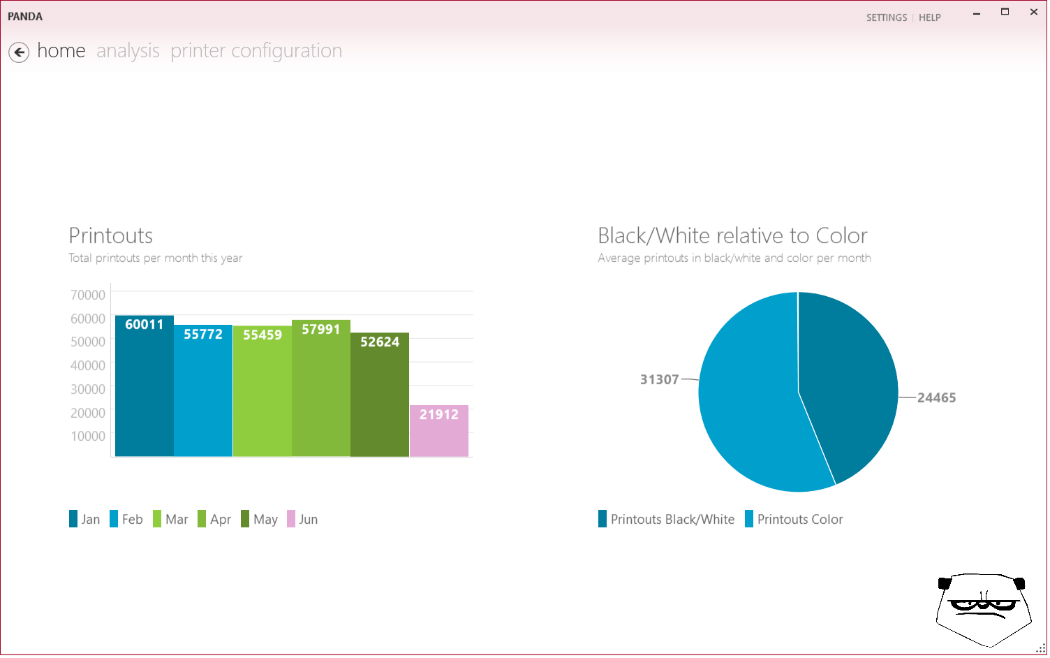 Panda - Print AND Analyse - is an open source and freeware tool to visualize and monitor the usage of your printers. Your printers have to support SNMP.